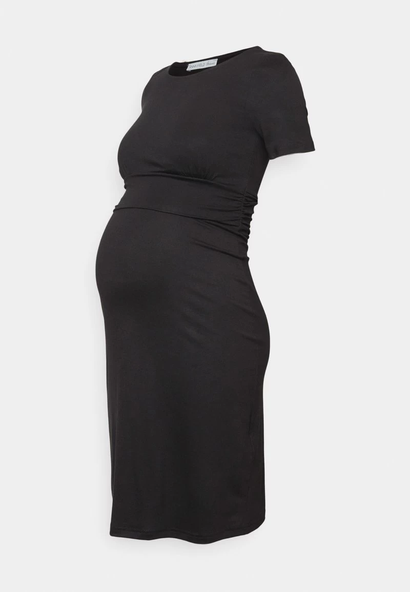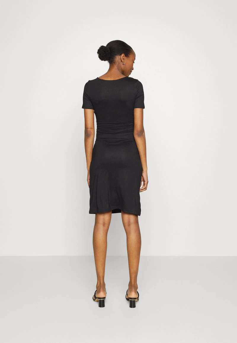 SHORT SLEEVES RUCHED WAIST MINI FLARED DRESS – Jerseykleid – Black